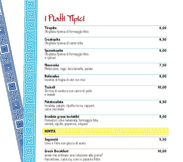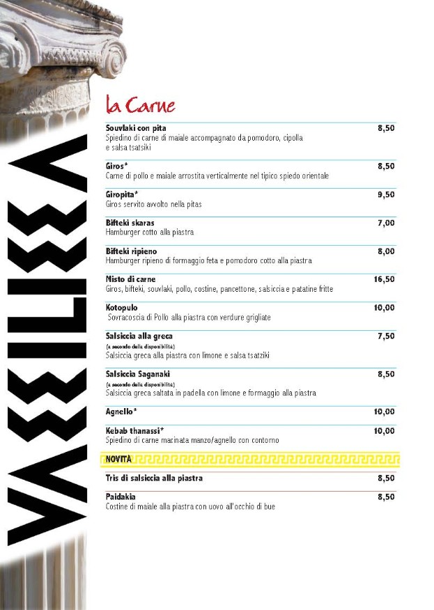 MENU' GRECO - ristorante vassilissa